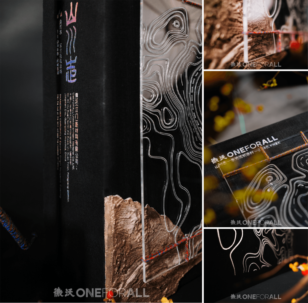 微沃认为,美虽非生存必需,却是生命完整的重要见证。心怀热爱与自我珍视的人,绝不会满足于一个仅有“必要功能”的世界。山川志系列的匠心,正渗透于每一处超越功能的细节之中:包装以等高线为纹,线装成册;篆书字迹由团队亲手书写,古拙笔触呼应山川厚重;内盒以彩线“装裱”样板,经纬度、古籍摘句等细节,无不强化着人与物、地与情的深层联结。